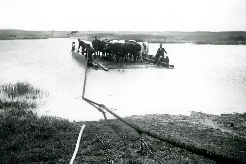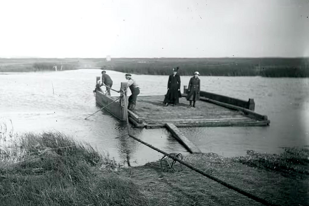 Færge førte folk over i både, dyr og vogne blev transporterede