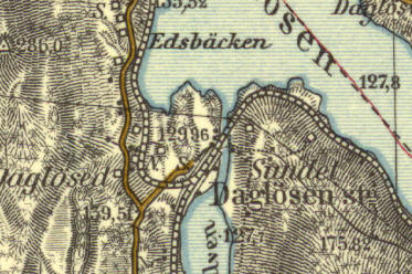 Brücke ab 1983 - noch nicht in Karte Stand 1932: https://historiskakartor.lantmateriet.se |
