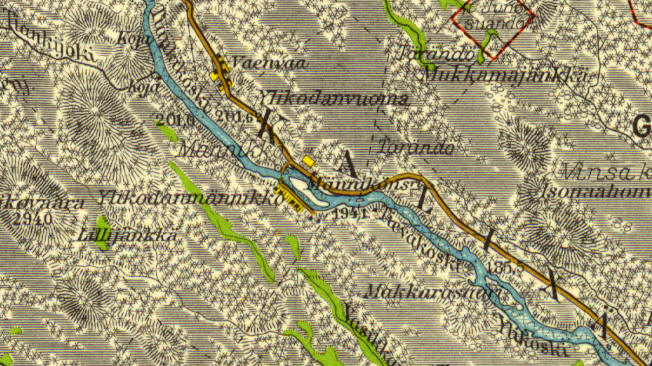 - Karte von 1873/1908![]() - 1985 durch Brücke nach Mörkö überflüssig geworden - Fährstelle 1986 eingestellt |
