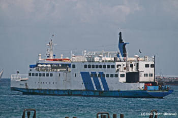 | 195 | Tonnage | 40,50 | m lang | 11,0 | m breit | 4,45 | m Tiefg. | 250/150 | Passagiere | 28 | PKW | Knoten | |||