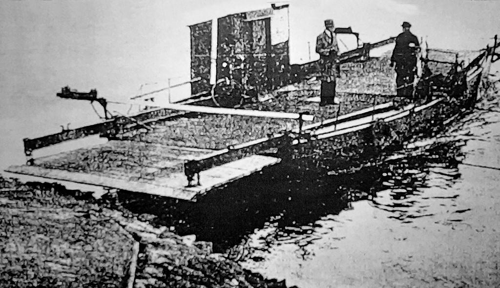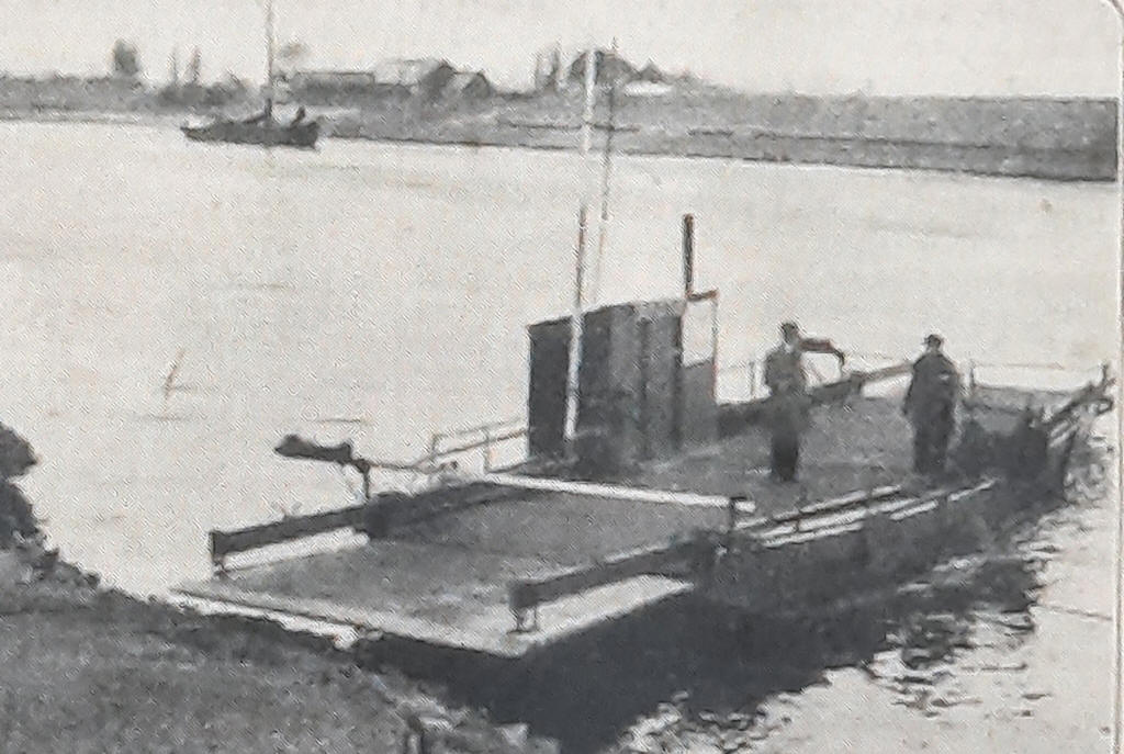 alte Pannerdensch Veer (vor 1944) - Foto: Informationstafel an der Fährstelle
