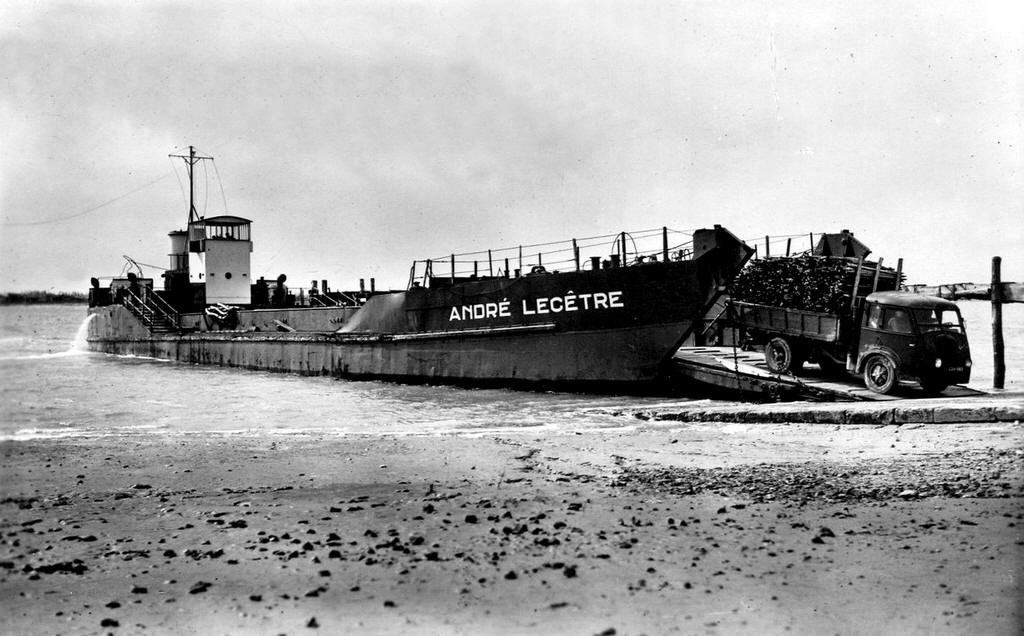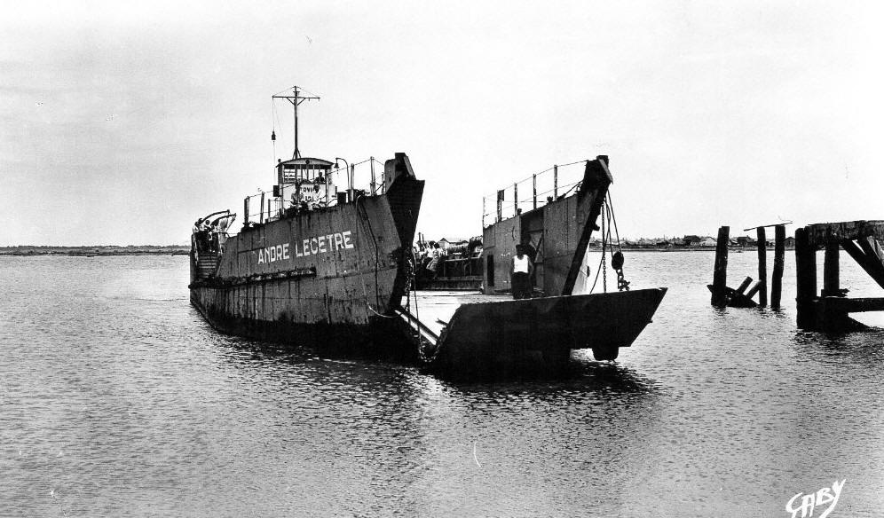 - 920 PS La régie départementale des passages d’eau est créée en 1948. En 1947, les appontements du Chapus sont construits et le Conseil Général rachète plusieurs péniches de débarquement de type LCT (Landing Craft of transport) pour assurer les transferts entre Le Chapus et Oléron et la traversée de la Seudre. Cette péniche sera baptisée « Député Jean Hay ». Mais par manque de pièces de rechange les traversées seront longtemps aléatoires. Devant le développement très rapide du transport des passagers et des voitures, deux autres péniches viennent aider le « Député Jean Hay » - l’une s’appellera le « André Lecêtre » et l’autre gardera son numéro d’origine LCT 892. Leur capacité de 24 voitures permettra de faire traverser en 1960, 285 000 voitures et 930000 passagers. Quelle |