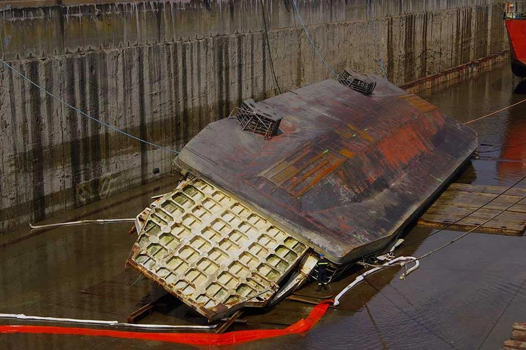 ![]() St. Hermeland nach dem Kentern zum Abbruch im Dock in Brest - unbekannte Bildquelle |