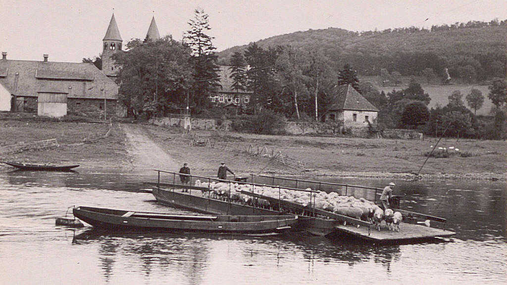 ![]() Fähre Bursfelde - 1950-55 - https://izw-medienarchiv.baw.de Historisches Bildarchiv der Bundeswasserstraßen |