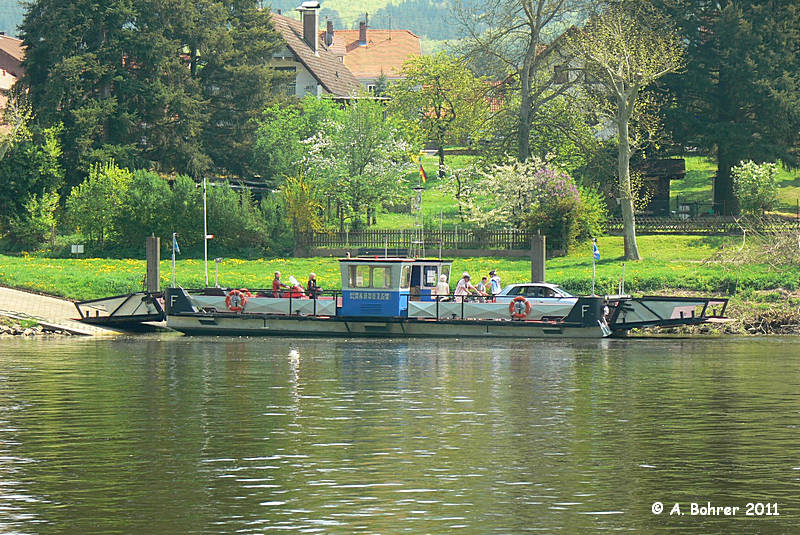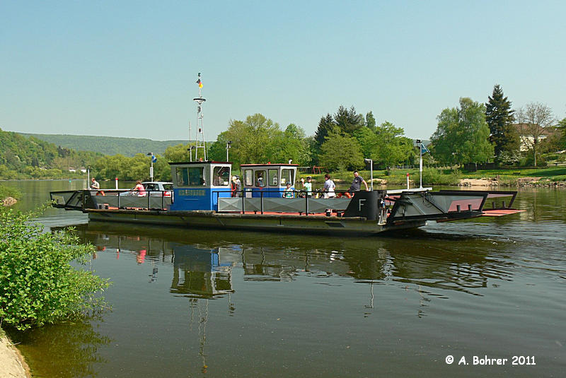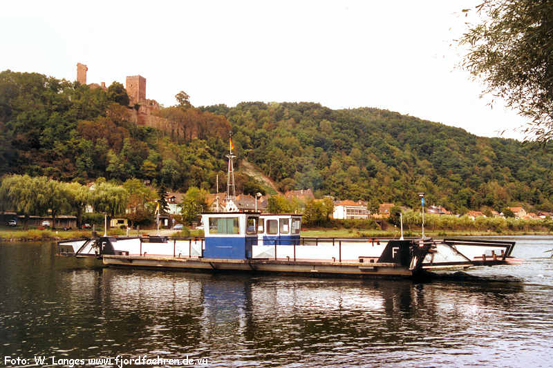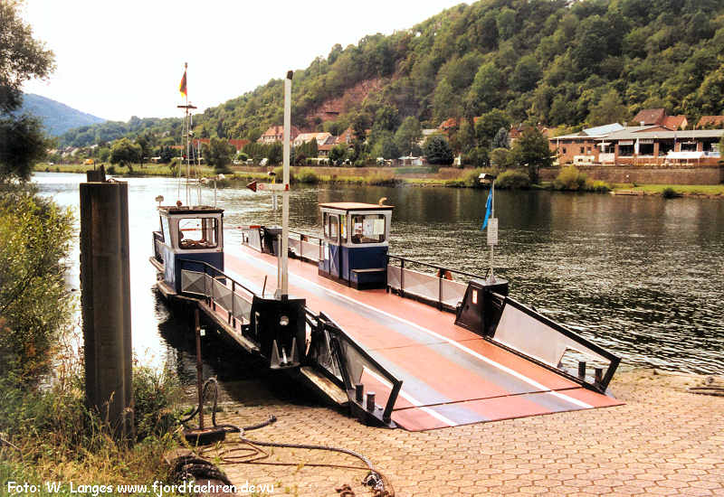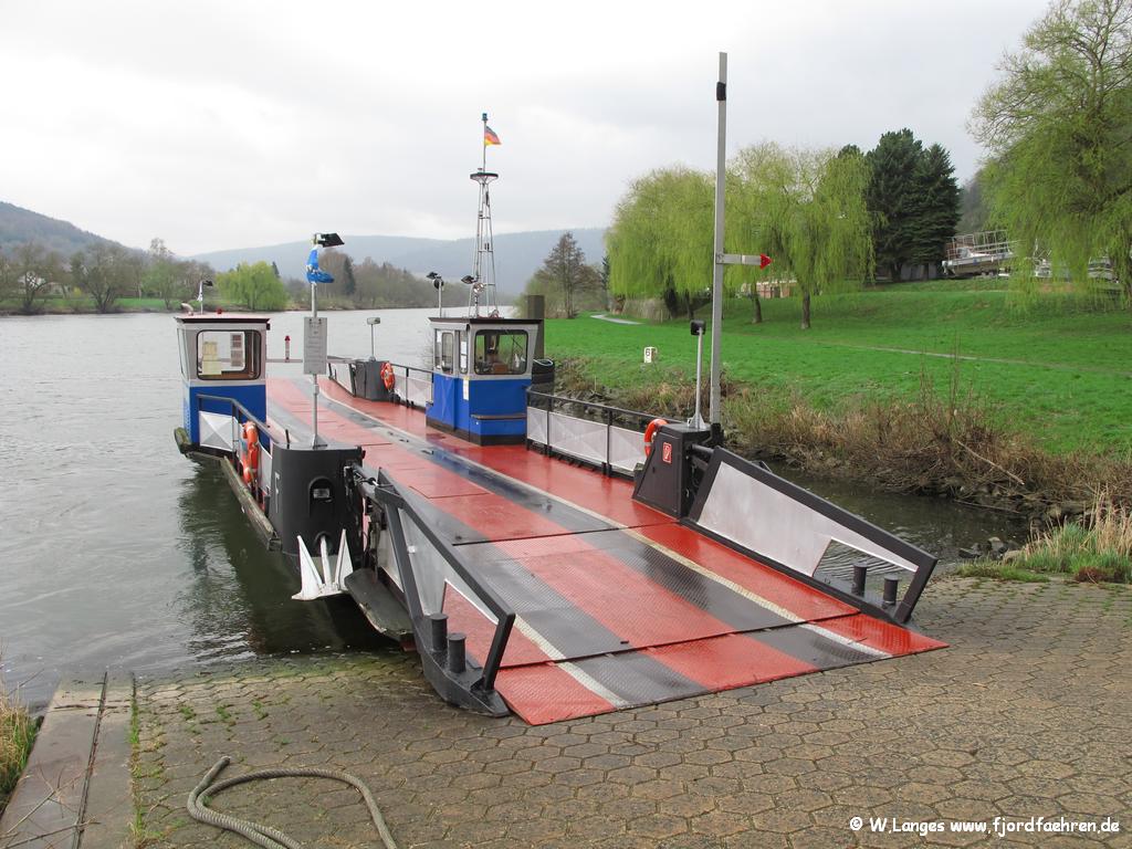 bis 1980 am Main in Dorfprozelten als Gierseilfähre 1980 - 1984 Umbau zur freifahrenden Fähre und aufliegend 1984 - ... Main: Stadtprozelten - Mondfeld 15.9.2020 Ende der privaten Fährverbindung - ab Anfang 1.11.2020 in Regie des "Zweckverband Mainhafen Wertheim" |
