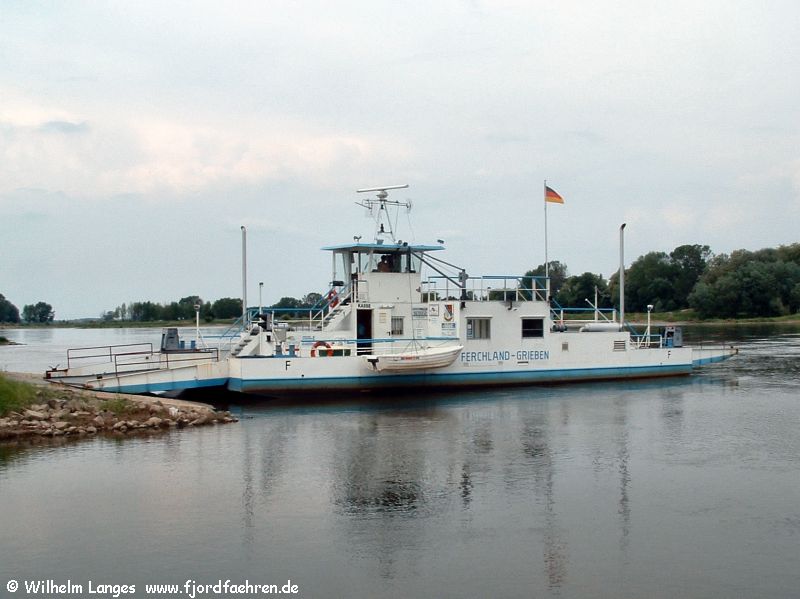1998 - 05.2020 / 1.9.2021 - ... Ferchland - Grieben, Elbe Stapellauf: 23. März 1998 Indienststellung: 04. April 1998 - ab xxxx neue Fährrampen Wiederinbetriebnahme: 1.9.2021 durch Nahverkehrsgesellschaft Jerichower Land mbH Name soll bis 2016 "Grieben-Ferchland" gewesen sein (?) |