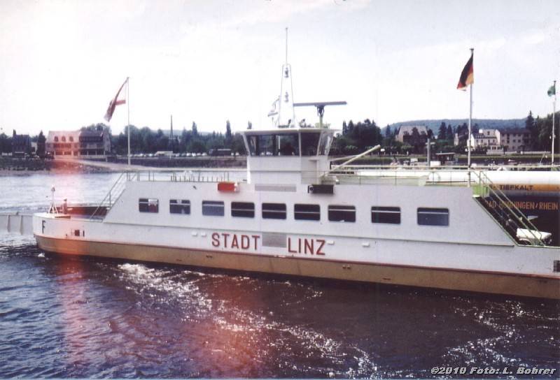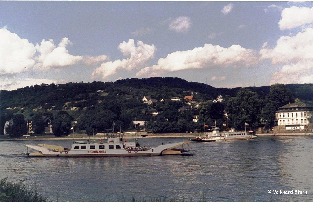 Linz - Kripp - 21.07.1985 - "St Johannes" und im Hintergrund die "Stadt Linz" Foto Volkhard Stern Bonn |