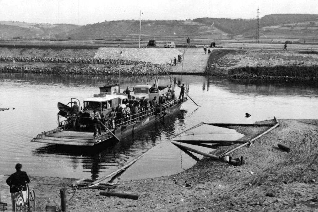 ![]() Bundesanstalt für Wasserbau Bildquelle: http://medienarchiv.baw.de/cdm/ref/collection/wsv/id/10654 ![]() Beschreibung: Fähre Eltmann beim Einschwimmen in die Anlegebucht am linken Ufer. Im stillen Wasser muss die Fähre eingestakt werden. Zur Verhinderung des Aufsetztens der Fähre auf Land (oberstrom) bei Westwinden ist eine Schwimmeranlage eingebaut |