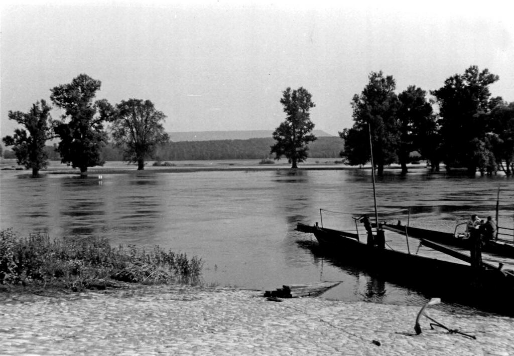 ![]() 12.7.1954 - Bildbeschreibung: Fähre Obertheres bei Hochwasser bei Schweinfurt Pegel 330 cm Bildquelle: Bundesanstalt für Wasserbau http://bildarchiv.baw.de/cdm/singleitem/collection/wsv/id/10210/rec/43 |