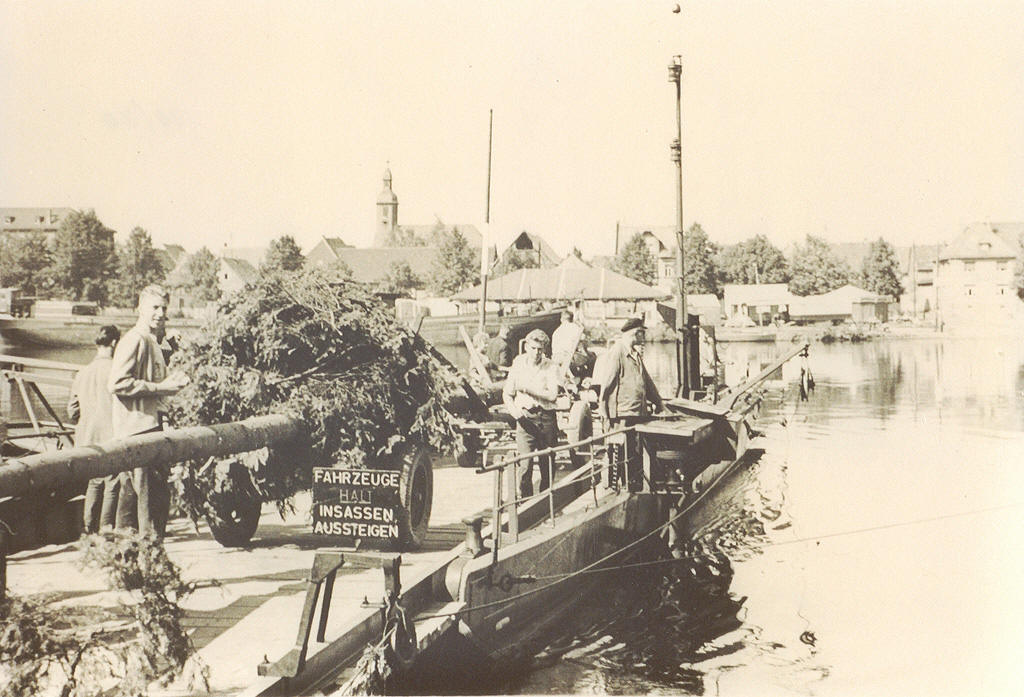 Mainfähre Okriftel ca. 1947 - ca. 1979 Bayrische Schiffbaugesellschaft mbH, Baujahr 1947, Länge: 22,50 m, Breite 4,83 m - 1979 verkauft an die DLRG-Gruppe Nackenheim - 14.7.1979 bei der Überführung von Okriftel zum Rhein - kurz vor der Mainmündung gesunken - durch WSA Mannheim geborgen und zum Nackenheimer Mühlarm geschleppt - 1982 Erhalt des befristeten Fährzeugnisses für die mittlerweile instandgesetzten Gierselfähre "Kisselwerth" - Infoquelle - - endgültiges Aus Herbst 1993; Fähre sollte verschrottet werden, aber: - Verkauf für 1,-DM an einen Landwirt in Ingelheim, eingesetzt zum Viehtransport zu einer Rheininsel |