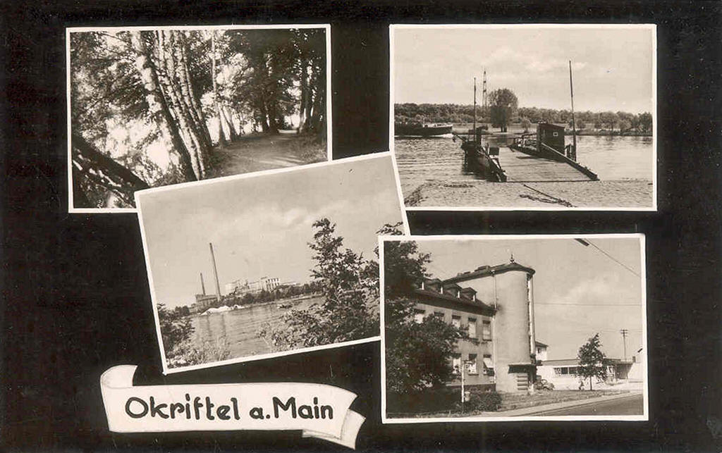 ![]() Fotolink - https://www.hattersheim.de/geschichte-von-okriftel.html in Mtbl. 5917 von 1897 "Fliegende Brücke", dto. von 1904: WF eingezeichnet 1909: Fährprahm 16 m, Werft: A. Schellenberger, Wörth a.M. (später Bayr. Schiffbau Ges.) für Okriftel, BN 103, Hochseilfähre |