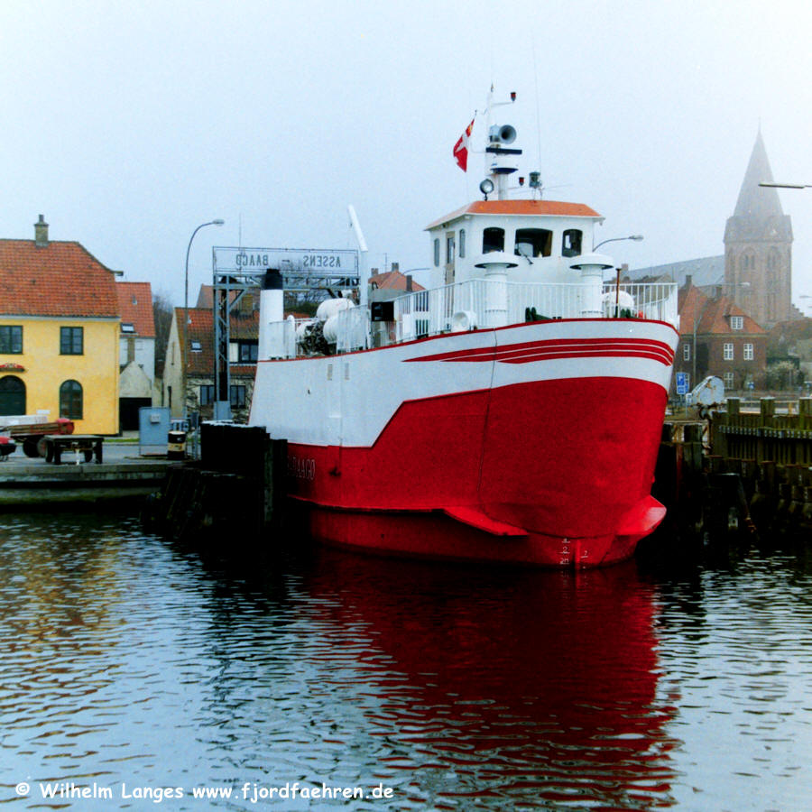 27.6.2008: auslaufend Assens - rechts der fjordfaehren.de-Trafic |
