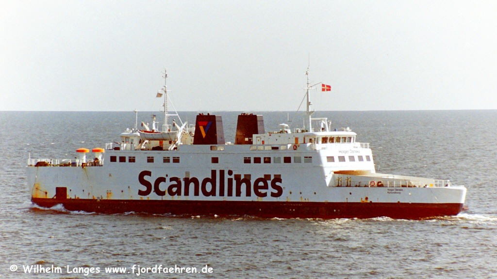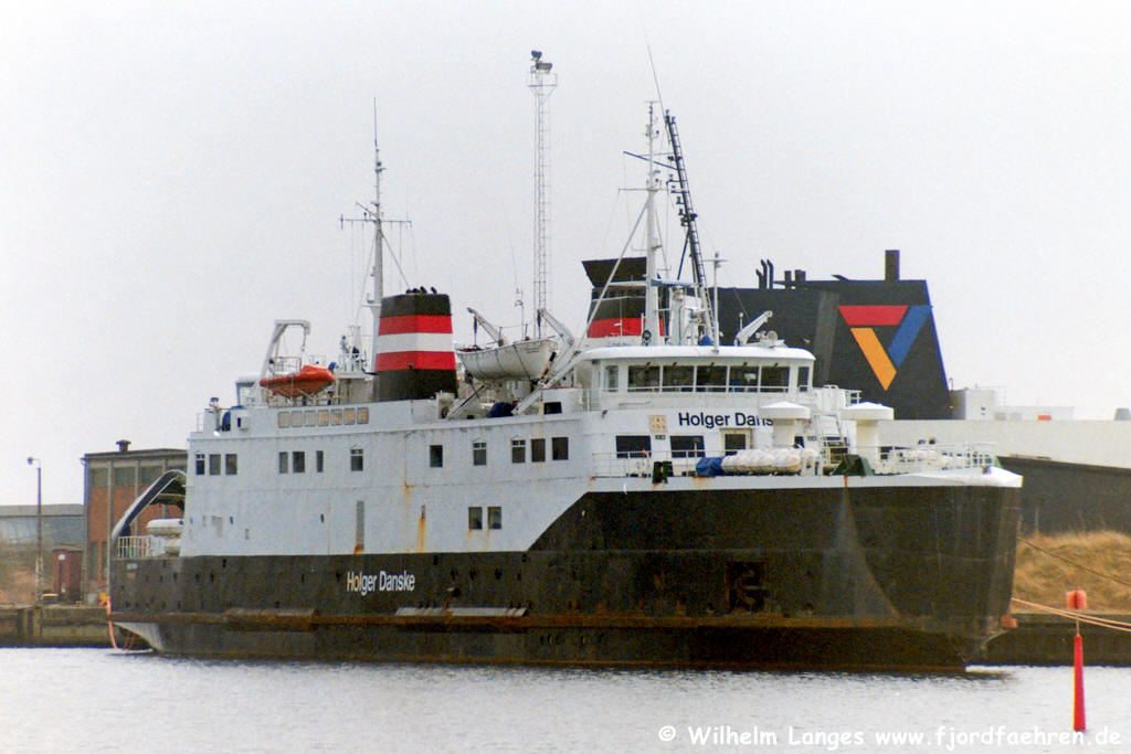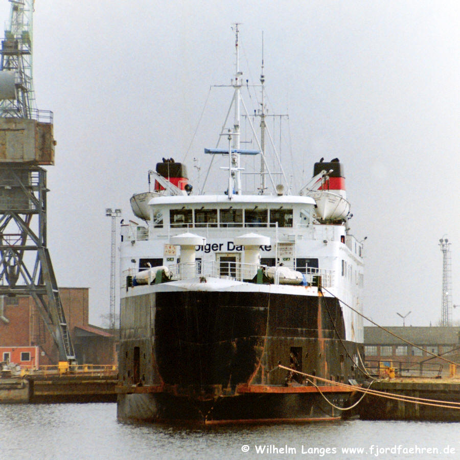 - Auftraggeber und Eigner: Det Danske Statsbaner, København 24.06.1976 - 03.11.1986: Liniendienst: Helsingør - Helsingborg 04.11.1986 - 29.12.1986: Modernisierung bei Aalborg Værft A/S, Aalborg 30.12.1986 - 03.11.1991: Liniendienst: Helsingør - Helsingborg 04.11.1991 - 01.02.1992: Umbau bei Fredericia Skibsværft A/S., Fredericia Hier werden die Eisenbahngleise entfernt und das Vorderdeck geschlossen. 02.02.1992 - 15.01.1994: Liniendienst: Kalundborg - Kolby Kås 16.01.1994 - 26.01.1994: Werftliegezeit 26.01.1994 - 25.05.1995: Liniendienst: Kalundborg - Kolby Kås In dieser Zeit wurde ein gebrauchtes Hängedeck der "COLOR FESTIVAL" eingebaut 26.05.1995 - 26.05.1995: Charter: Teknisk Landsforbund, København Eine Rundtour Kalundborg - Kerteminde - Brückenbaustelle Størebælt - Kerteminde - Kalundborg 27.05.1995 - 30.09.1995: Liniendienst: Kalundborg - Kolby Kås 01.10.1995 - 00.04.1997: Eigner: DSB Rederi A/S., København Liniendienst: Kalundborg - Kolby Kås 00.04.1997 - 31.12.1997: Eigner: Scandlines / DSB Rederi A/S., København Liniendienst: Kalundborg - Kolby Kås 01.01.1998 - 30.11.1998: Eigner: SFDS A/S., Kalundborg Liniendienst Kalundborg - Kolby Kås 01.12.1998 - 00.01.1999: Auflieger in Kalundborg 00.01.199 - 31.05.1999: Auflieger in Nakskov 02.06.1999 - 17.06.1999: Umbau bei Svendborg Skibsværft A/S., Svendborg 18.06.1999 - 02.01.2001: Eigner: Scandlines A/S., København Liniendienst: Puttgarden - Rødby 03.01.2001 - 17.01.2001: Werftliegezeit bei Svendborg Værft. Das Schiff erhält die Scandlines-Farben 18.01.2001 - xx. 2020: Liniendienst: Puttgarden - Rødby als Gefahrgutfähre 6.12.2021 zum Abbruch nach Grenå |