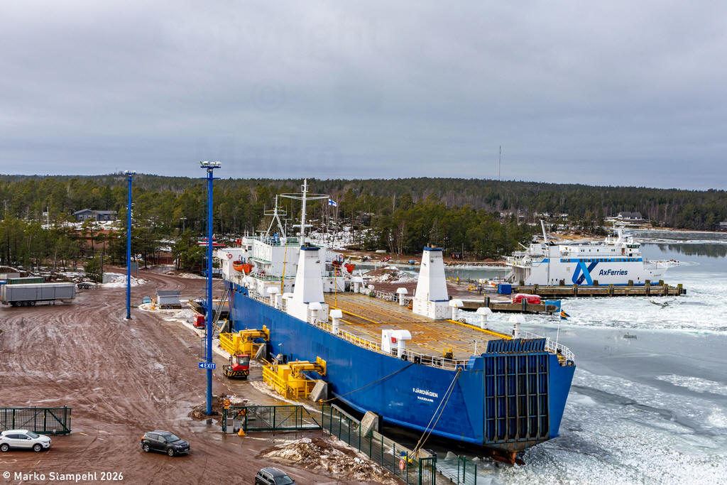 ![]() Fjärdvägen aufliegend in Langnäs 27.02.2026 © Marko Stampehl rechts die Viggen |