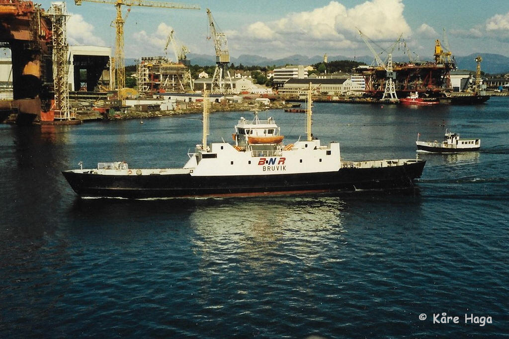 1986 Umbau: Einbau Bug - / Heckklappe 1986 - 1989 Leirvåg - Sløvåg - Skipavik - Gråvik (Fensfjorden) 1989 - 1997 Garnes - Haus mit Unterbrechungen 1989 Stavanger - Vikevåg 1992/1993 Leirvåg - Sløvåg - Skipavik - Gråvik 1997 - 2004 Breistein - Valestrandfossen 2004 - 2005 Krokeide - Hufthammar - Austevollshella 01.2005 verkauft an Ornö Sjötrafik / Abbau der Bug-/Heckklappe Ornö - Dalarö (ab 2005) |
