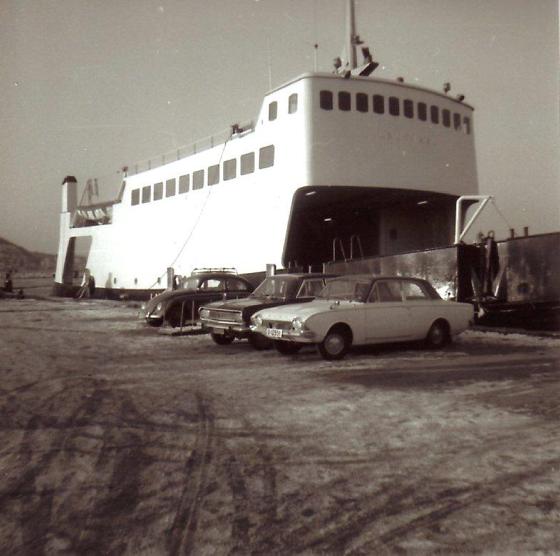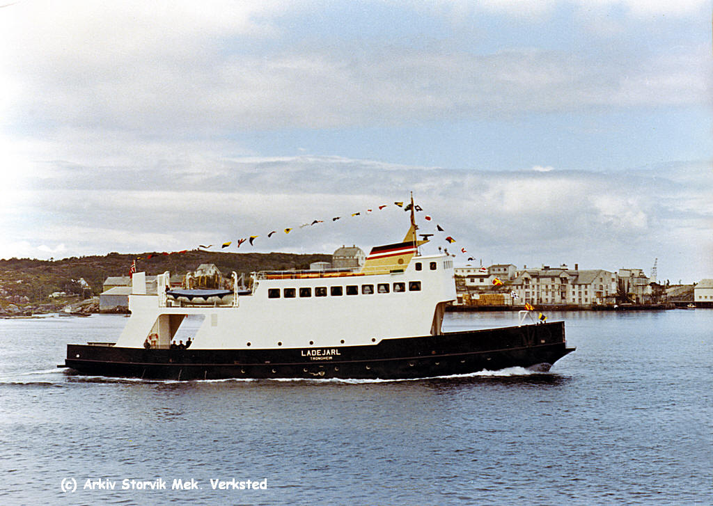 ![]() Ladejarl på prøvetur ut gjennom Sørsundbrua i Kristiansund 1966 (bilde fra Storvik-arkivet). |