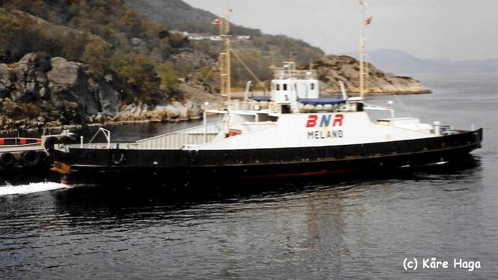 Garnes - Haus 1979 - 1988 Garnes - Haus 1991 - 1994 Flatråker - Jektevik - Nordhuglo ? - ? Leirvik - Ranavik - Sunde ? - 2005 Reserveschiff + aufliegend 1999 (Sommer): Kavanndal - Utne -Kinsarvik 2005 nach Kroatien verkauft 2005 - 2013 Drvenik - Dominče (Korčula) (ab 2011 - 2013 nur noch im Sommerhalbjahr, dann eingestellt) auf der Webseite von LNP keine Routenangabe ab 2013 nur noch Frachtfähre (?) / unklar lt. Croatian Register of Shipping (CRS): ab 11.2017 2.5.2018 letztes aktives AIS-Signal aus Sibenik, dort aufliegend - s. Foto 09.2018 20.9.2020 in Sibenik in Brand geraten |