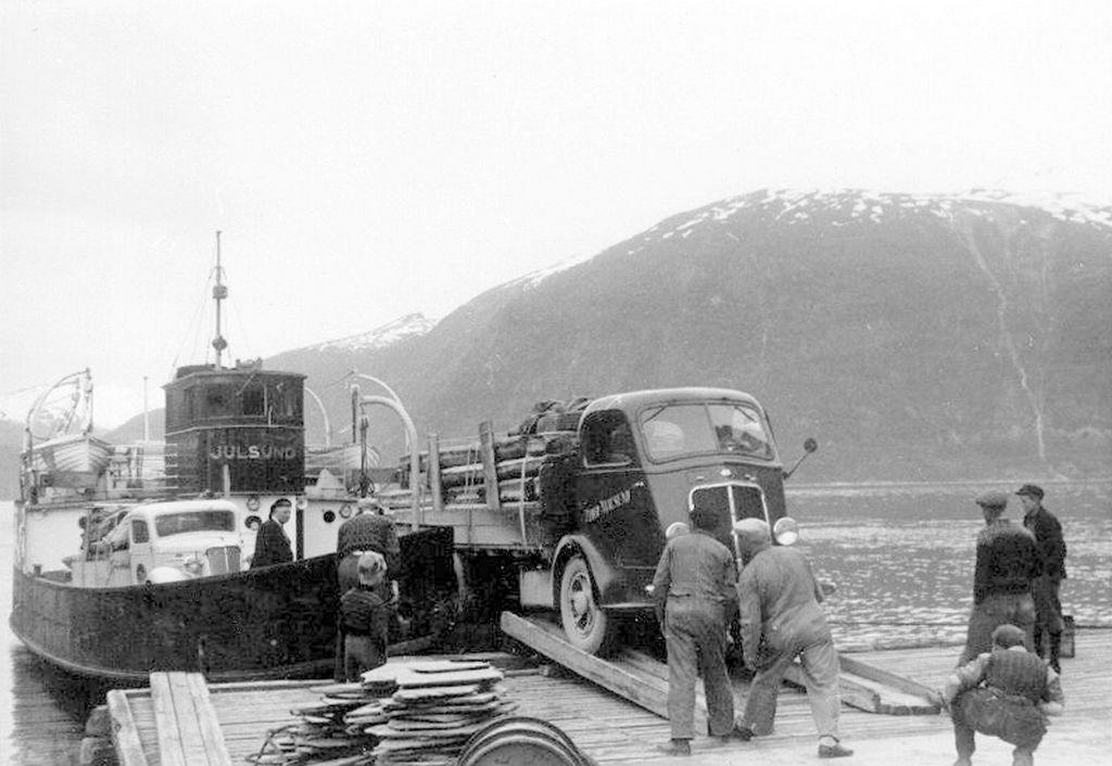 "Julsund" i 1963 på Leknes fergekai. Foto Per Urke |