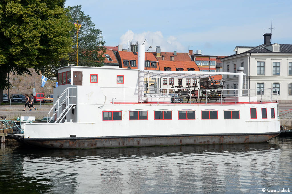 1935 - 1953 Brevik - Stathelle lt. norweg. Register 10.1953 nach Schweden verkauft !! 1953 - 1965 Lillsved (Värmdö) - Tranvik (Ljusterö), S 1965 - 1975 Frachtfähre Vaxholm 1975 - 1989 Vaxholm - Norra Tynningö, S 1989 Umbau zum Restaurantschiff 1989 - ? Restaurantschif in Borgholm, Öland ab 1995 registriert als Restaurantprahm Restaurantschiff (?) - noch 07.2015 aufliegend in Kalmar gesehen - in Skeppslista 2017 als "restaurangpråm" |