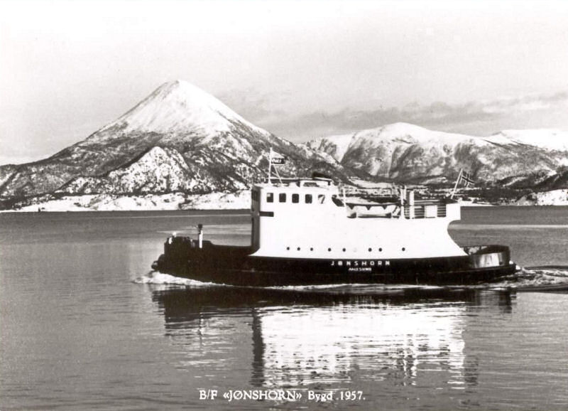 ![]() "Jønshorn" ved Eidsdal ferjekai ca 1960. I bakgrunnen "Trygge" i rute fra Valldal mot Eidsdal. (AK-Sammlung) |