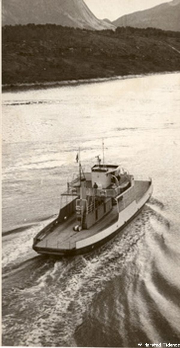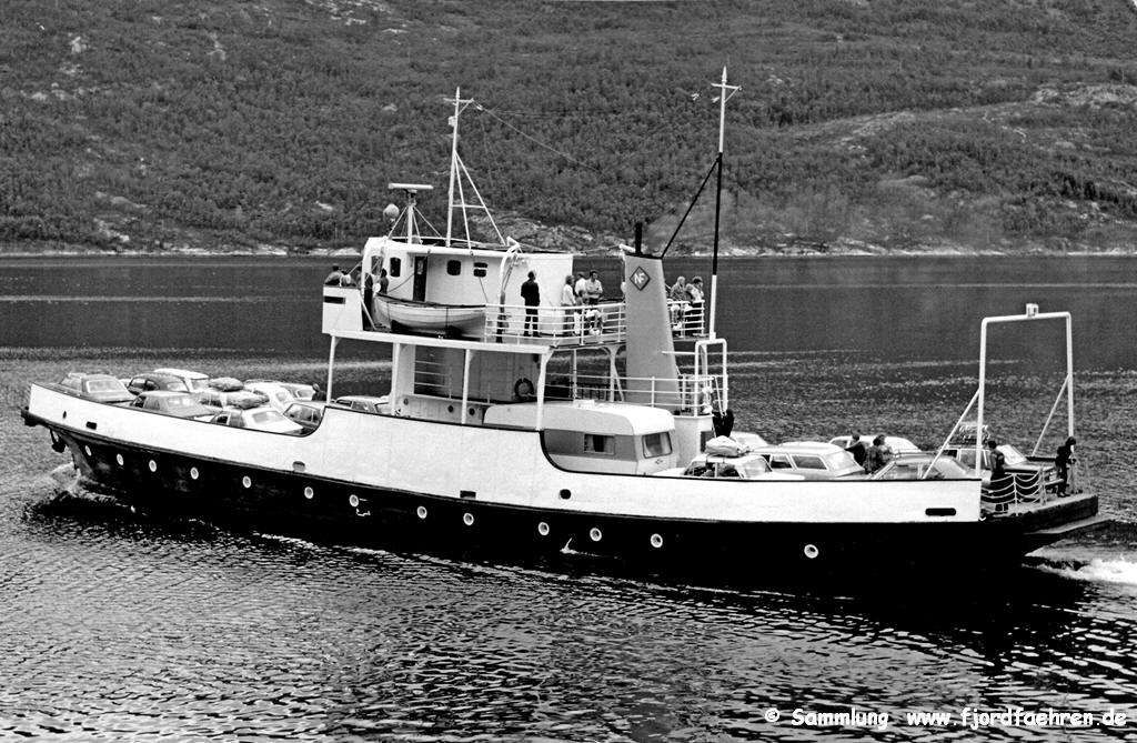 1944 - 24.09.1964 Vassvik - Øyjord (Rombaksfjord, E 6) auch: Vercharterungen 1950: Lyngseidet - Olderdalen 1952: Røsvik - Bonåsjøen 1959 Umbau: Verlängerung um 11 m / Verbreiterung ca. 1,5 m, neuer Motor 1964 - 14.9.1969 Forså - Sætran (Efjord, Ofoten, E 6) auch Info: Bonnåsjøen - Røsvik ?? 1969 - 1975 aufgelegt, Reservefähre und Zusatzfähre im Sommer 04.1975 nach GB verkauft und zum Segelschoner umgebaut 1975 - 1983 Freizeitfahrzeug 1983 in Catania/Italien gesunken |