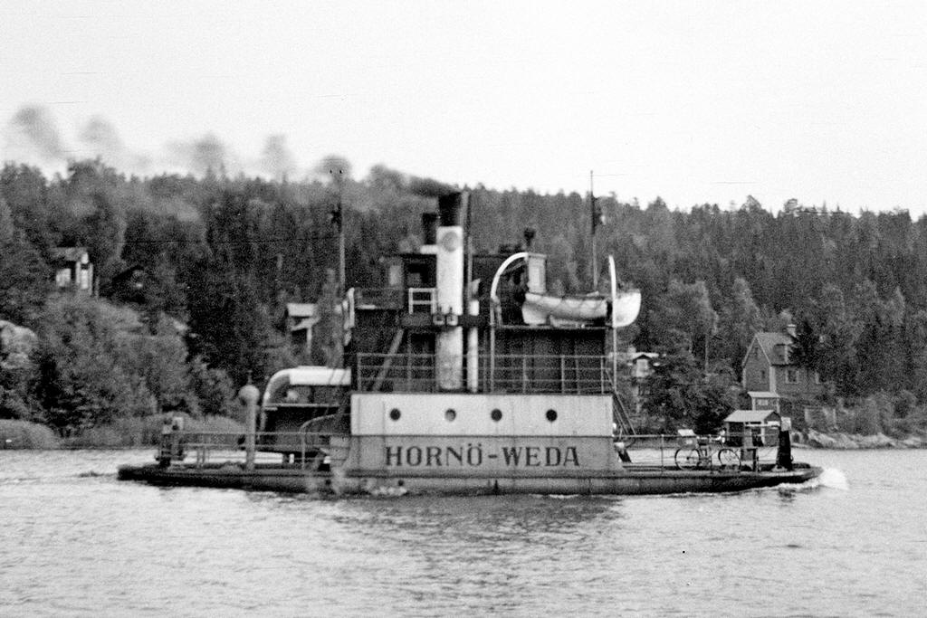 ![]() Färjeläget Hornö-Veda - https://digitaltmuseum.se Foto: Lundgren, V. |