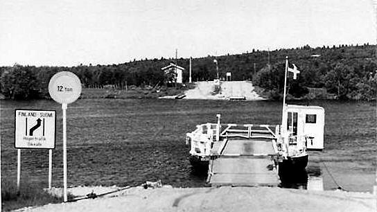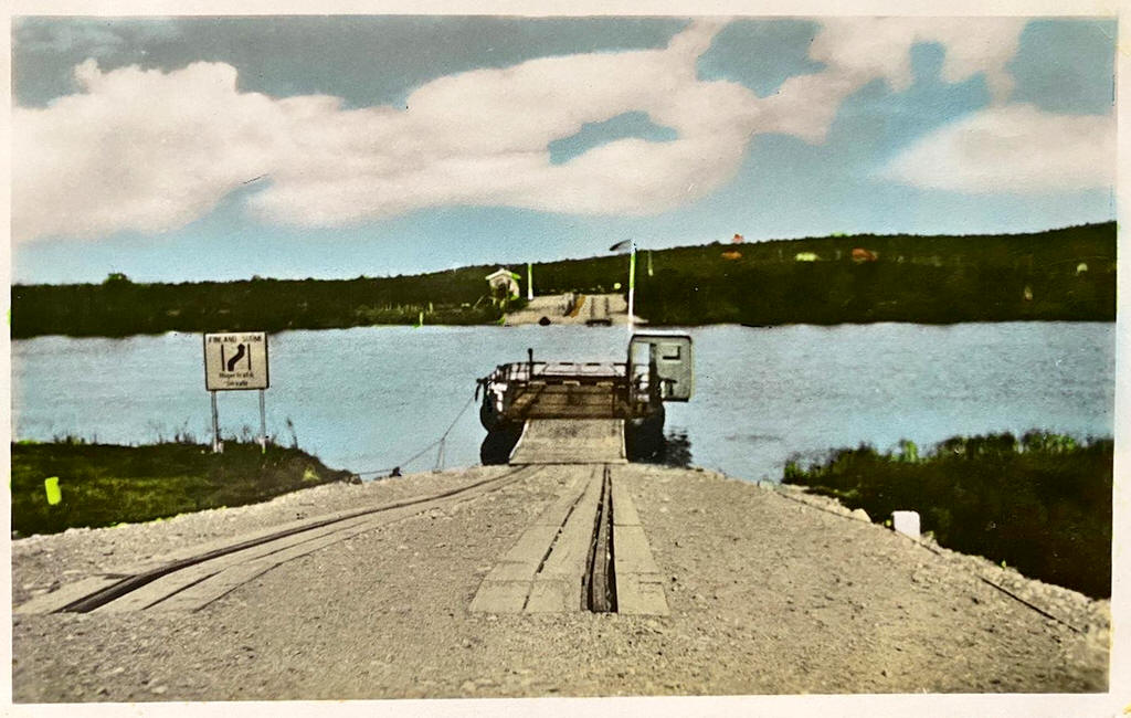 finnisch / schwedische Fähre: von schweden betrieben 1950 - 1960/61 Kaaresuvanto (SF) - Karesuando (S) Muonioälven / Muonionjoki vor 1963 verkauft |