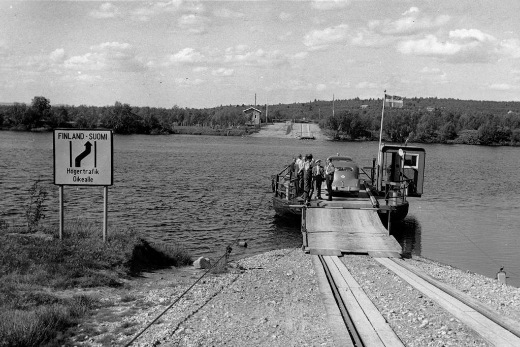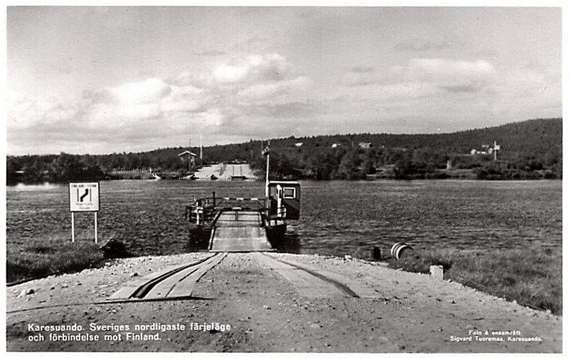![]() ![]() Färjled över Muonio älv vid Karesuando. Väg 343 Nedre Soppero - riksgränsen vid Karesuando. Foto: Carl Rydberg - https://digitaltmuseum.org/ CC-BY |