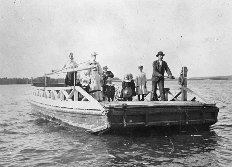 ![]() Färjman Nils Magnusson med familj på färjan Rödösundet - Frösön 1907. Bildquelle (CC BY-NC-ND 4.0) |