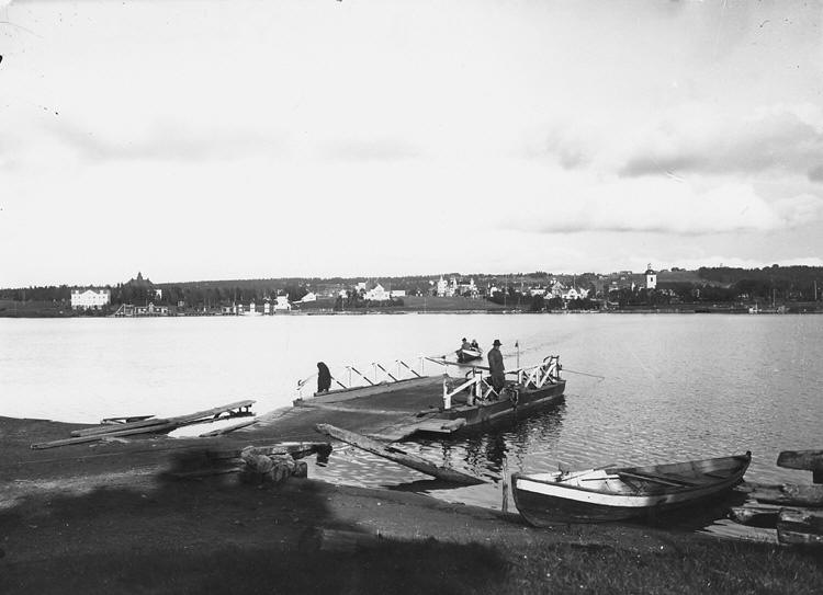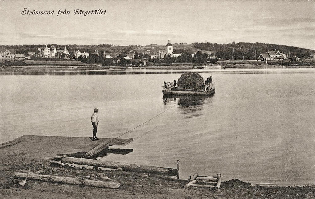 ![]() Strömsund från gamla färjläget på Näsvikssidan med dragfärjan liggande inne i början på 1920. Foto: August Lundholm Bildquelle - Public Domain |