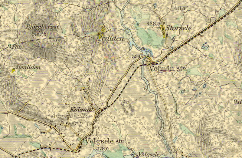![]() Vojmåns färjeläge år 1932. "BO 00009.02 – Vojmån", Hämtad 23 september 2025 från platsen: Vilhelmina Fotoarkiv, https://vhlm.kulturhotell.se/objects/c143-38656/ |