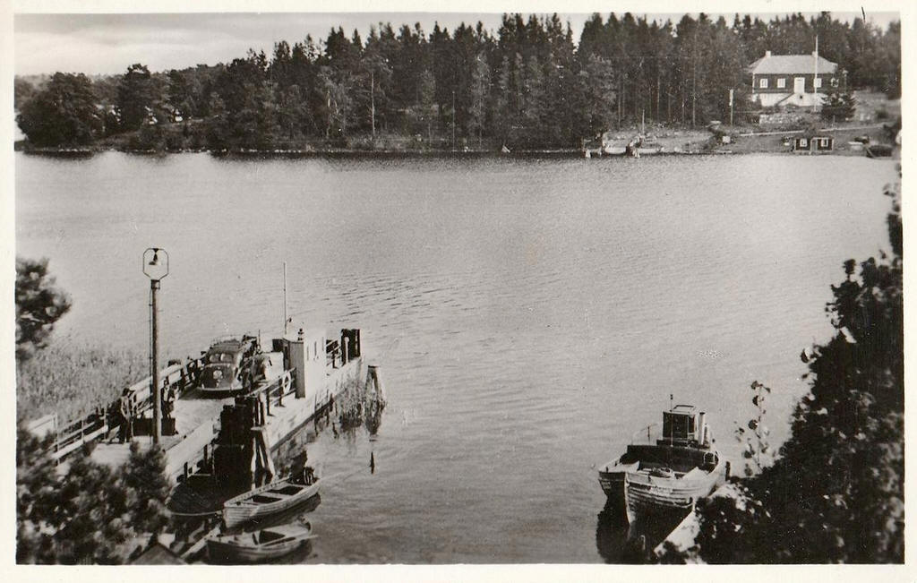 Färja 14 1942-1946 gebaut bei Valdemarsviks Slip & Båtvarv, Valdemarsvik, Holzrumpf 14,75 ml - 5,1 mb. 66 Pass., 3 PKW, Solo-Benzinmotor mit 5 PS, später 19-PS ASEA-Elektromotor an Land 1946 - 1955 Lagnöströmmen: Nedre Lagnö 1956 an Bauweft verkauft ![]() Lagnöströmmen färja 1940er |