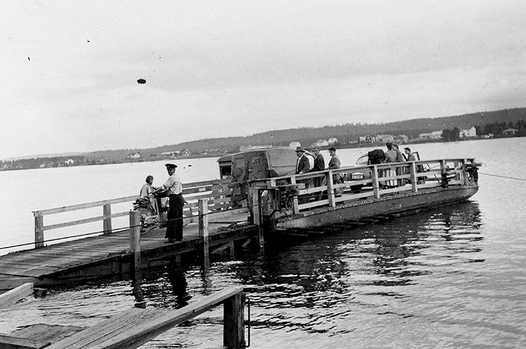 ![]() Råstrand vid överfart med färjan över Vindelälven. 1945 - 1955 "Vbm C 71 2", Hämtad 27 juli 2025 från platsen: Samlingarna hos Västerbottens Museum, Fotograf Olof Öberg, Gunnarn |