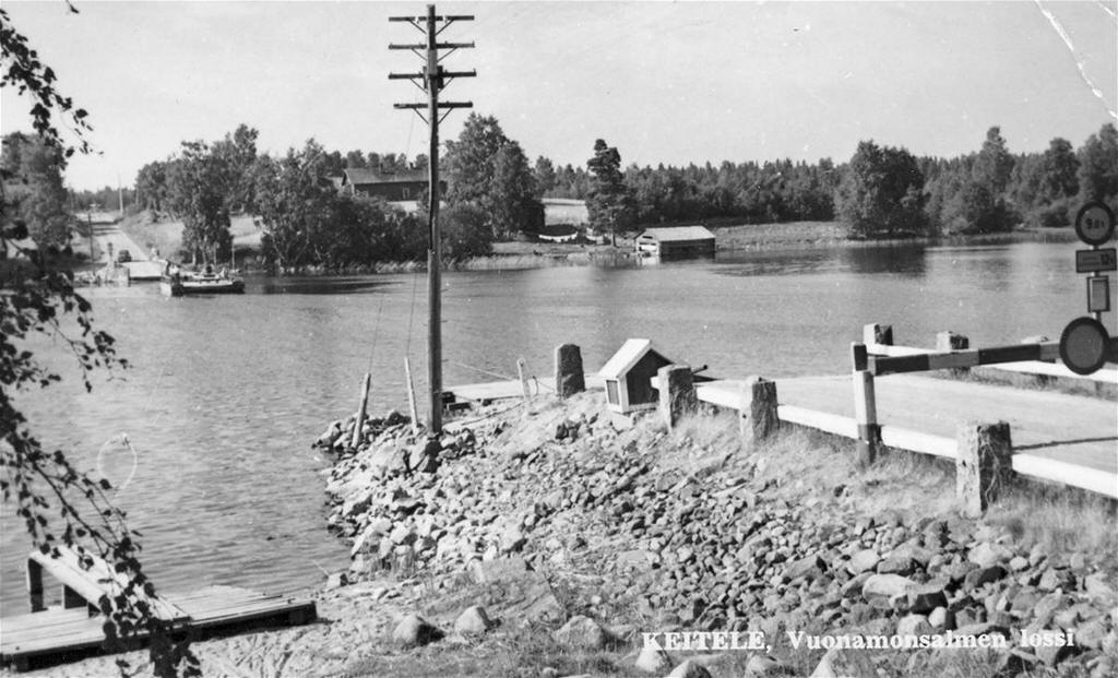 -> 1970 zur Fährstelle Pelkosenniemi verlegt Abtransport von Keiteleen nach Pelkosenniemi am 16.4.1970 Bildquelle: https://digi.kirjastot.fi Foto: Paananen, Vellamo “Vuonamonsalmen lossi” - lizensfrei |