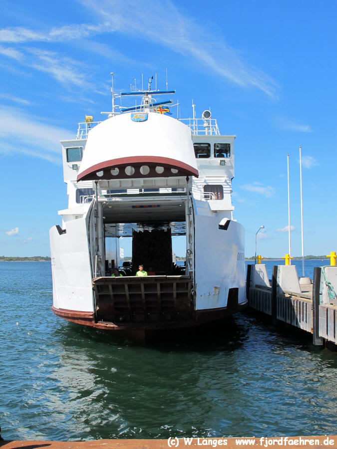 ![]() 30.7.2014 in Kökar - rückwärts an Bord für die Überfahrt nach Överö |