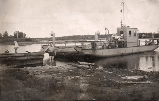 Utajärven lossi 1. - Ruderfähre ca. 5-6 ml, 3 mb - "Laitilan lossi" 2. - hölzerne, handgezogene 8-to-Seilfähre ("kapulalossi") ab ca. 1918 - 1939 3. - 1939 - 1949 motorbetriebene Stahlfähre 12-to, Benzinmotor (Andros-Motor 18/20-PS), geb. 1939 bei Ahlström, Varkaus B.-nr: 643 - ab 07.1949 Brücke |