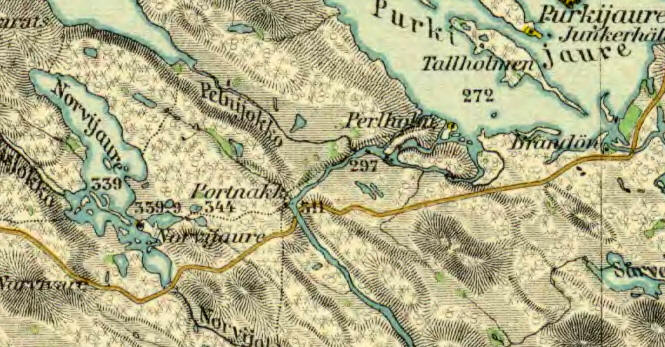 Insel im Muonioälven - Brücke ab ?? - noch nicht in Karte 1941 https://historiskakartor.lantmateriet.se/ |