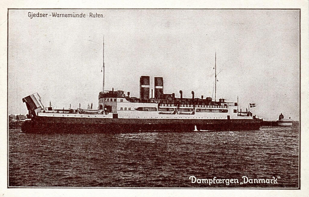 | "DANMARK" Stapellauf: 07.12.1921 Ablieferung: 11.12.1922 Bauwerft: Helsingørs Skibsværft & Maskinbyggeri A/S., Helsingør Baunummer: 163 BRT: 2727 / ab xxxx; 2915,36 NRT: 1094 / ab xxxx: 1264,12 TDW: 650 Länge: 101,72 Breite: 18,75 Tiefgang: 4,50 Knoten: 15 - 16 PS: 3500 (3600) / 2760 PSi KW: 2572 Antrieb: 2 X 3-zyl.-Helsingørs MSK- Dampfmaschine mit je ca. 1800 PS Passagiere: 1100 Kabinen: 12 PKW: 70 komb. Fahrzeug- und Eisenbahnfähre, 3 Gleise mit zus. 157 m Gleislänge Waggons: 20 Signal: NDTG / (OXDA) OXDS Registernummer: A 85 Daten: Jürgen Stein, Hamburg = Ergänzungen |