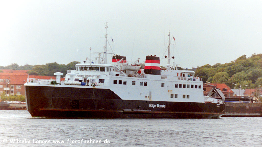 - Auftraggeber und Eigner: Det Danske Statsbaner, København 24.06.1976 - 03.11.1986: Liniendienst: Helsingør - Helsingborg 04.11.1986 - 29.12.1986: Modernisierung bei Aalborg Værft A/S, Aalborg 30.12.1986 - 03.11.1991: Liniendienst: Helsingør - Helsingborg 04.11.1991 - 01.02.1992: Umbau bei Fredericia Skibsværft A/S., Fredericia Hier werden die Eisenbahngleise entfernt und das Vorderdeck geschlossen. 02.02.1992 - 15.01.1994: Liniendienst: Kalundborg - Kolby Kås 16.01.1994 - 26.01.1994: Werftliegezeit 26.01.1994 - 25.05.1995: Liniendienst: Kalundborg - Kolby Kås In dieser Zeit wurde ein gebrauchtes Hängedeck der "COLOR FESTIVAL" eingebaut 26.05.1995 - 26.05.1995: Charter: Teknisk Landsforbund, København Eine Rundtour Kalundborg - Kerteminde - Brückenbaustelle Størebælt - Kerteminde - Kalundborg 27.05.1995 - 30.09.1995: Liniendienst: Kalundborg - Kolby Kås 01.10.1995 - 00.04.1997: Eigner: DSB Rederi A/S., København Liniendienst: Kalundborg - Kolby Kås 00.04.1997 - 31.12.1997: Eigner: Scandlines / DSB Rederi A/S., København Liniendienst: Kalundborg - Kolby Kås 01.01.1998 - 30.11.1998: Eigner: SFDS A/S., Kalundborg Liniendienst Kalundborg - Kolby Kås 01.12.1998 - 00.01.1999: Auflieger in Kalundborg 00.01.199 - 31.05.1999: Auflieger in Nakskov 02.06.1999 - 17.06.1999: Umbau bei Svendborg Skibsværft A/S., Svendborg 18.06.1999 - 02.01.2001: Eigner: Scandlines A/S., København Liniendienst: Puttgarden - Rødby 03.01.2001 - 17.01.2001: Werftliegezeit bei Svendborg Værft. Das Schiff erhält die Scandlines-Farben 18.01.2001 - xx. 2020: Liniendienst: Puttgarden - Rødby als Gefahrgutfähre 6.12.2021 zum Abbruch nach Grenå |