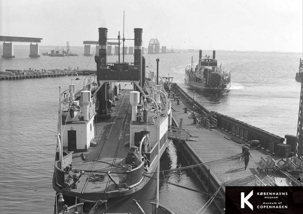 ![]() 1930er Jahre - während des Baues der Storstrømbro - einlaufend die Thyra |