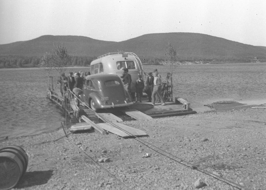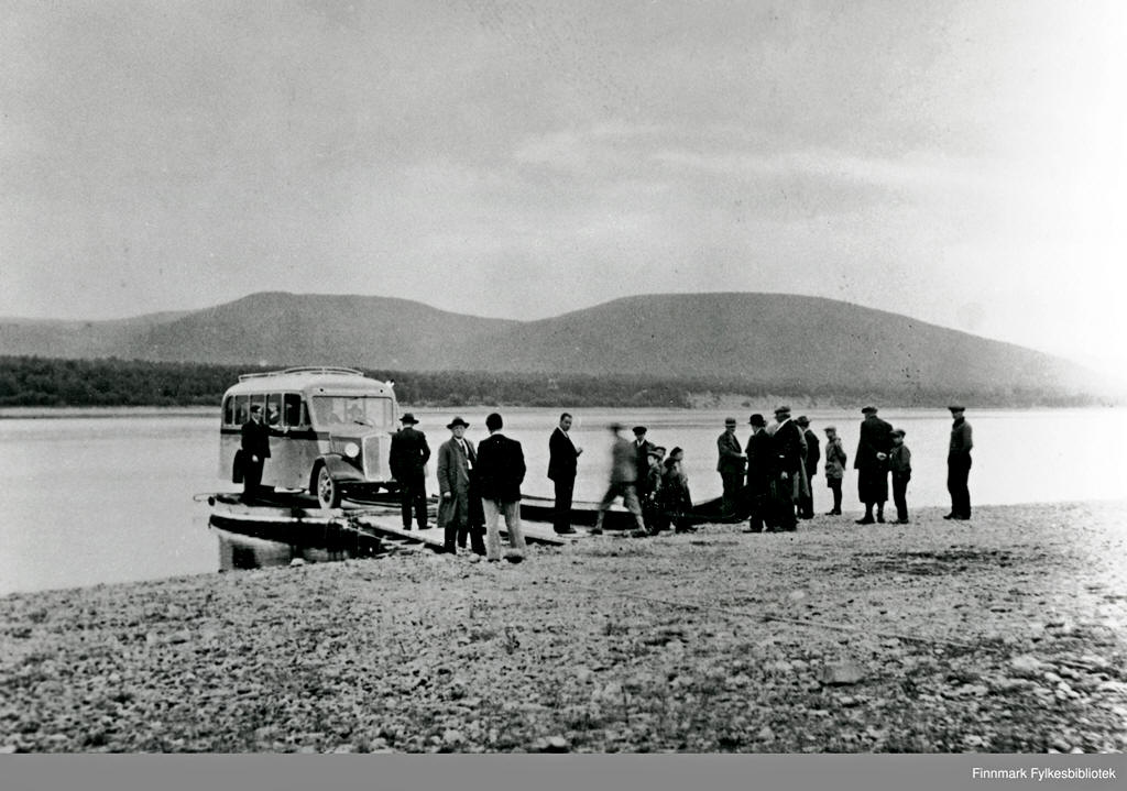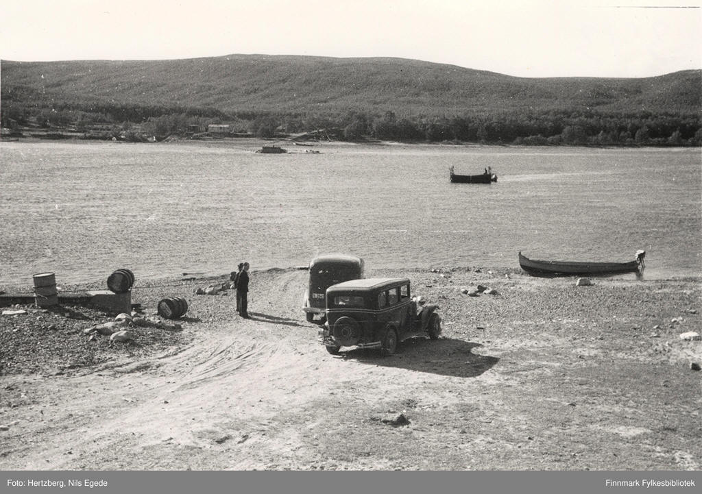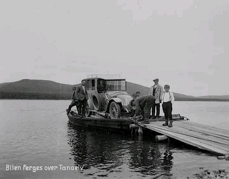 Bilfergen over Tanaelva ved Seida ca. 1936, før bukkebru 1939.