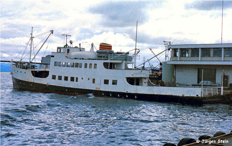 für A. Augsburg, Riga, Lettland, Stapellauf als "Stadtrat Arnswald" am 06.1914 10.1914 übernommen von der Kaiserlichen Marine 12.1914 vermutlich wegen des Kriegsausbruches nicht dorthin ausgeliefert, sondern von der Kaiserlichen Marine übernommen 1914 - 1918 Marineschiff (Deutschland) Einsatz als Schlepper und Eisbrecher in Ostpreussen (stationiert Königsberg, Libau) u.a. Festungsbootsabteilung Königsberg 1918 nach Hadersleben verkauft, Einsatz bei der Weichselschutzflottille im Bereich Danzig 20.12.1919 nach Norwegen verkauft 1919 Umbau zum Fahrgastschiff 1919 - 1951 Lokalroutenboot Kristiania - Askerlandet - Sætre 1934 Umbau (neue Brücke) jetzt 194 brt 1951/1952: sollte das Schiff zur Verschrottung verkauft werden an British Iron & Steel Corp., der Verkauf wurde durch die "Skipskontrollen" untersagt und anulliert 01.1952 verkauft an Jøsenfjord Rutelag 1952 Umbau zur Autofähre bei Br. Lothe AS Flytedokken in Haugesund 1953 - 05.1980 im Stavanger - Ryfylke-Dienst: Stavanger - Tau - Årdal; - ab 1964 auch Stavanger - Sjernarøyane - Ombo - Foreneset - Erfjord - ab 1975 Stavanger - Sjernarøyane - 1.5.1980 Reserveschiff 09.1980 an deutschen Eigner verkauft 1980/81 Umbauten in den Niederlanden, geplant war Einsatz im Mittelmeer 1981 weiterer Verkauf 1981 - 1987 Girne (Zypern) - Tasucu (Türkei) 1987 nach Blitzschlag ausgebrannt in Tasucu, aufgelegt 1989 in Tasucu (Izmir Shipyard) abgebrochen |