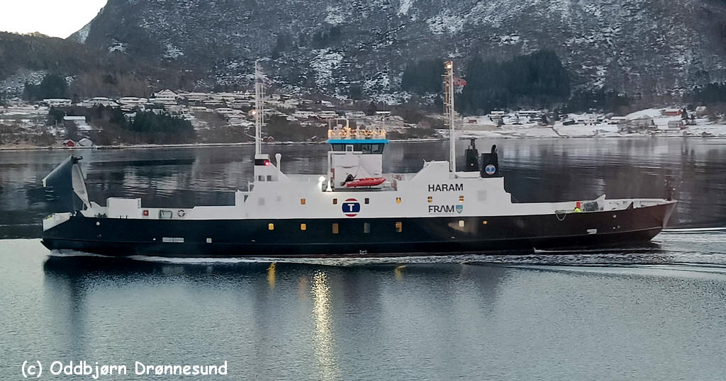 ![]() M/F Haram på vei mot kai på Dryna 20 oktober 2024 |