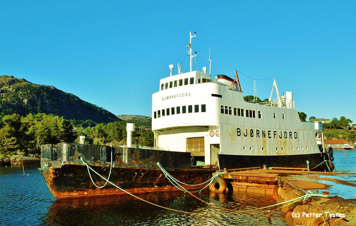 ![]() Gamle M/F Bjørnefjord, som nyt haustsola på tampen av livet, ved Kiskaien i Grunnavågen. |