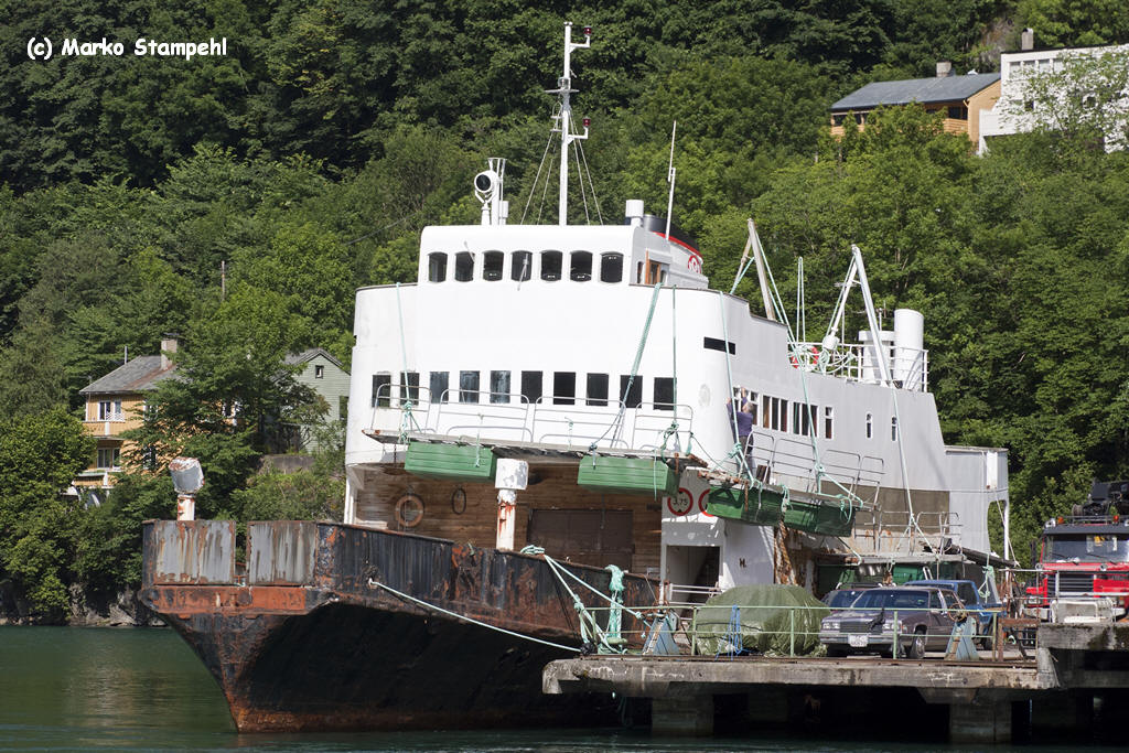 - 1963 Kinsarvik - Utne - Kvanndal 25.6.1963 - 1967 Halhjem - Våge - Bruntveit - Fitjar; Anlauf Sandvikvåg ab 1964 Sommer 1967 - (?) Halhjem - Sandvikvåg auch Einsätze bzw. Reserveeinsätze: - Løfallstrand - Gjermundshamn - Hufthamar - Krokeide (als B-Fähre) - Bekkjarvik - Sandvikvåg (1983) - 1986: Eidsdal - Linge + Molde - Vestnes - Vikebukt (MRF-Charter) 1988 - ca. 2009 ? Fischaufzucht Vevelstad im Vistenfjord 2010 Verkauf an J. Brigtsen (Fährenliebhaber in Dimmelsvik/Sunnhordland), geplanter Abbruch nicht ausgeführt Juli 2010 überführt nach Dimmelsvik August 2010 überführt nach Odda zur Restaurierung durch den neugegründeten "Hardanger Veteranferjelag" 2010 - ca. 2016 zur Restaurierung aufliegend in Odda / Hardanger - 08.2016 von Ferjelaget Skånevik und Fjord 2 gekauft: Verwendung als Ersatzteilspender für die Skånevik und Hardingen Sr. z.B. einen funktionstüchtigen Wichmann-Motor - 09.2016 nach Scan-Met, Eldøyane / Stord überführt; Beginn Abbruch 2.11.2016 |