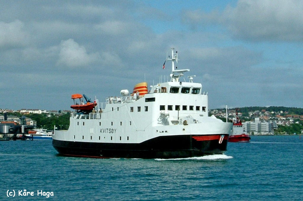 04.1971 Ablieferung ca. 05.1971 - 1990/1992 (?) Stavanger - Finnøy - Sjernarøyene - Nedstrand (auch ... - Vikedal) 1990/1992 (?) - 2001 Mekjarvik - Kvitsøy 1996 Umbau jetzt 749 brt 2001 - 2003 Reserveschiff für Stavangerske z.B. Stavanger - Lysebotn (Sommer) ab 2003 Reservefähre bei Hardanger Sunnhordlandske Dampskipsselskap (HSD) u.a.: Sævrøy - Fedje, Langevåg - Buavåg Vercharterungen und aufgelegt 2004 in Charter für Fylkesbaatane: Askvoll - Fure - Værlandet Reservefähre, Hordaland + Rogaland Vercharterungen Sommer 2011 geplant für Skrolsvik - Stornes (27.5.2011 - ?) 02.2012 nach Kamerun verkauft, Austrag aus NOR 04.2012 Abreise 03.2012 via Lissabon/Lisboa, 07.2012 in Tiko / Kamerum abgeliefert geplant für Tiko (Cameroon) - Calabar (Nigeria) ab ca. 2015 aufliegend in Tiko ???, letzte Positionsinfo: 10.7.2016 ca. 2017: google-maps 25.8.2019 in der Bucht von Guinea auf dem Weg von Calabar / Nigeria nach Douala / Kamerun gekentert, vermutlich ca. 100 Opfer |