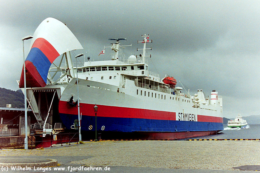 1973 - 1974 diverse kurzfristige Vercharterungen 1974 - 1978 Ellesmere Port - Tartous - Beirut - Piräus - Mersin - Limassol (für Car-Line Paris Cie., Paris) 1978 - 1980 diverse kurzfristige Vercharterungen 1980 - 1982 Neapel - Tripolis (für Neptunia Lines SPA, Neapel) 1983 - 1987 Britisches Verteidigungsministerium - "Falkland Task Force"; meist im Einsatz Marchwood (GB) - Antwerpen (B) 1987/1988 Umbau zur Passagier-/Frachtfähre bei Fosen Mek. Verksted, Rissa 1988 - 1992 Skudneshavn - Mekjarvik/Stavanger 1992 Mekjarvik - Arsvågen 1992/1993 aufgelegt 1993 Krokeide/Bergen - Mekjarvik 1993/1994 aufgelegt 1994 - 2002 Dalian - Vantai (China) 2002 - 2006 Singapore stationiert in Merak (Insel Java), Indonesien (Info 12.2017) |