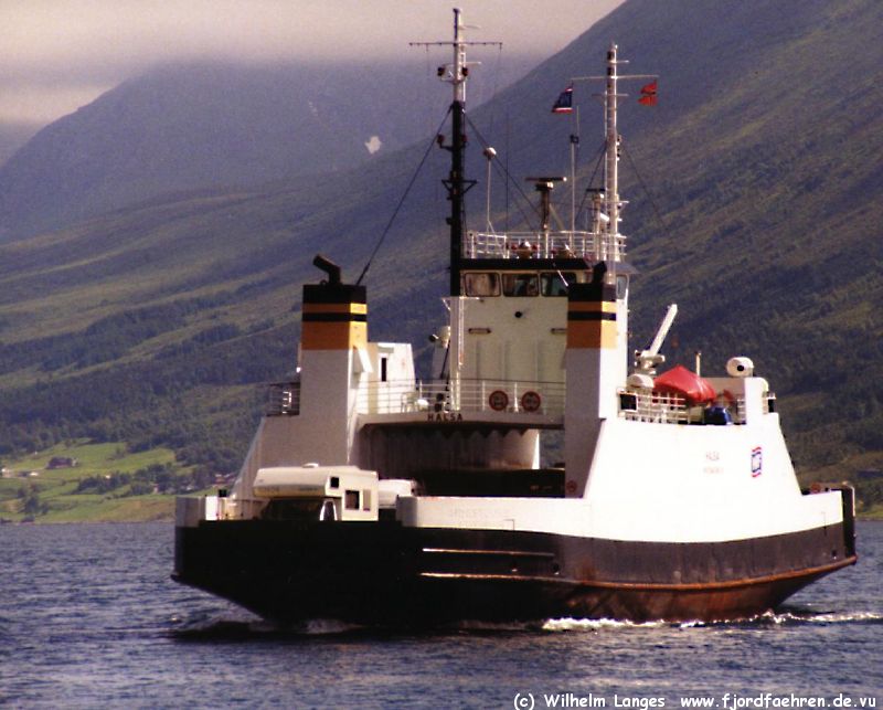 Ablieferung 4.7.1978 1978 - 1990/92 Forsand - Lauvvik 1990 - 1992 Stavanger - Nesheim 1993 - 1995 unklar 1995 - 2005 Årvik - Kopparnes / Årvika - Koparneset 2005 - 04.2008 Arasvik - Hennset 2007 Kvanne - Røkkum (2 Monate als Ablösefähre) 2008 (Sommer) Kristiansund - Bremsnes 2010 (Sommer) Sæbø - Leknes - Standal 2008 - 2013 Reservefähre 01.2012 - 02.2012 Kvanne - Rykkjem 02.2012 - 04.2012 Arasvika - Hennset Sommer 2012 Sæbø - Leknes - Standal 12.2013 verkauft 2014 - 2020 Stavanger - Byøyane / Reservefähre Stavanger - Vassøy 01.2021 - ca. Sommer 2022: Ryfylkeferja: (Stavanger) / Nedstrand - Ryfylkebassenget: Fisterøyene -...- Hebnes - Foldøy in Charter für NORLED 05.-12.2024 Stavanger - Vassøy 1.1.2025 - 04.2026 Lauvvik - Lysebotn |