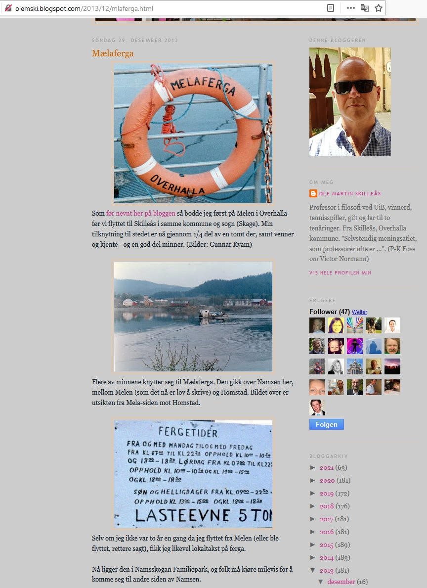 ![]() ![]() Ferjeleie på Mælen sett frå nordsida av Namsen 1987 . Overhalla Historielag - Aksel Sellæg - Namsos - Bildquelle - |