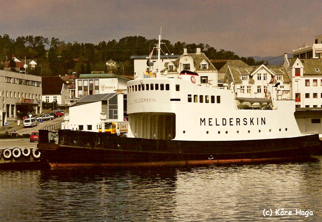 ex. "Melderskin" som restaurantbåten "Fergekroen" ved Aker Brygge i Oslo, 1995. Foto: Harald Sætre Av Harald Sætre – Self-published work by Harald Sætre, CC BY-SA 4.0, https://commons.wikimedia.org/w/index.php?curid=568491 |